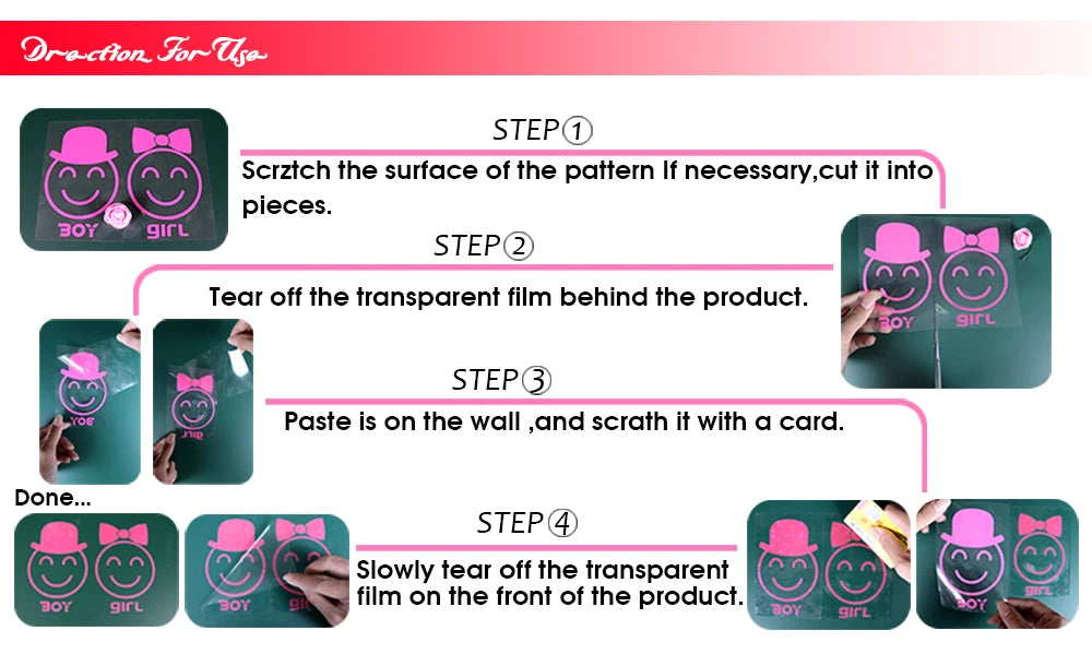 4. Gently Peel the transparent film from the back of the product, When pasting, stick the middle and then flatten it to the left and right,then slowly tear off the surface of the transparent film. Beautiful.