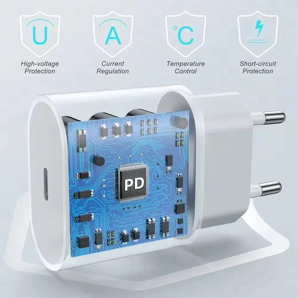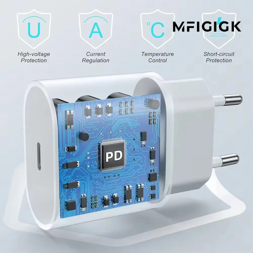 Experience rapid charge with the 20W PD Charger, perfect for quickly powering up your iPhone or iPad.