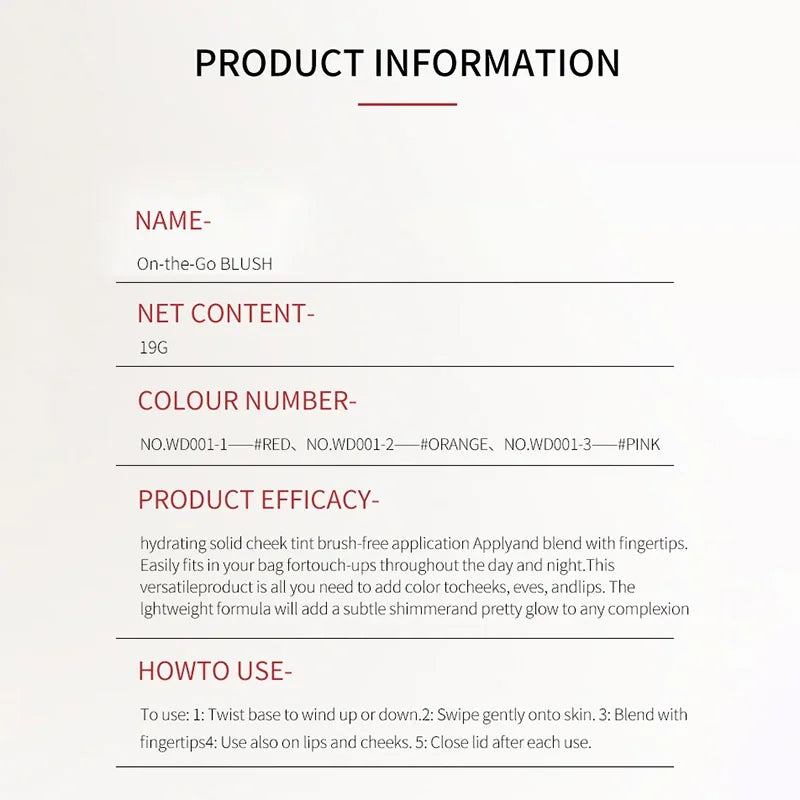 Cheek 3-in-1 Lip Tinted Moistured Blush Stick Silky Brighten Blush Cream Blusher Cosmetics Tubes Matte Contour Cosmetics New