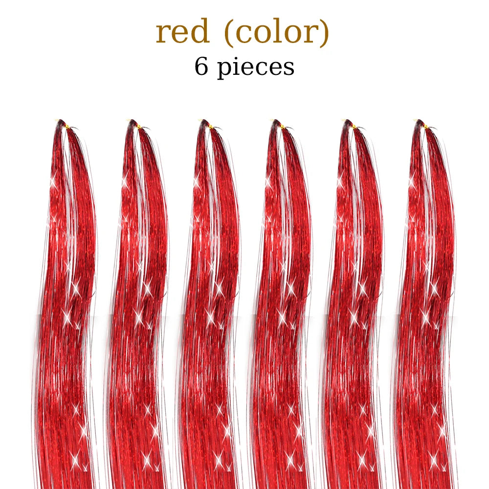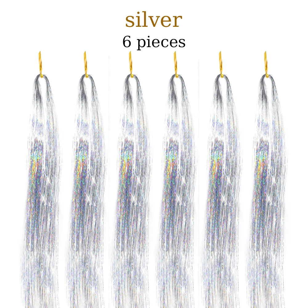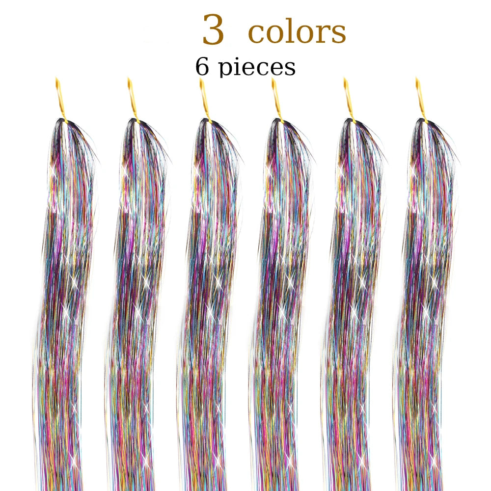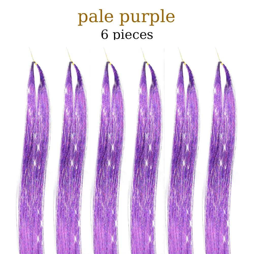 48 Inch Hair Tinsel Kit With Tool 1200 strands Tinsel Hair Extensions 12 Colors Fairy Hair Tinsel, Sparkling Shiny Hair Tinsel