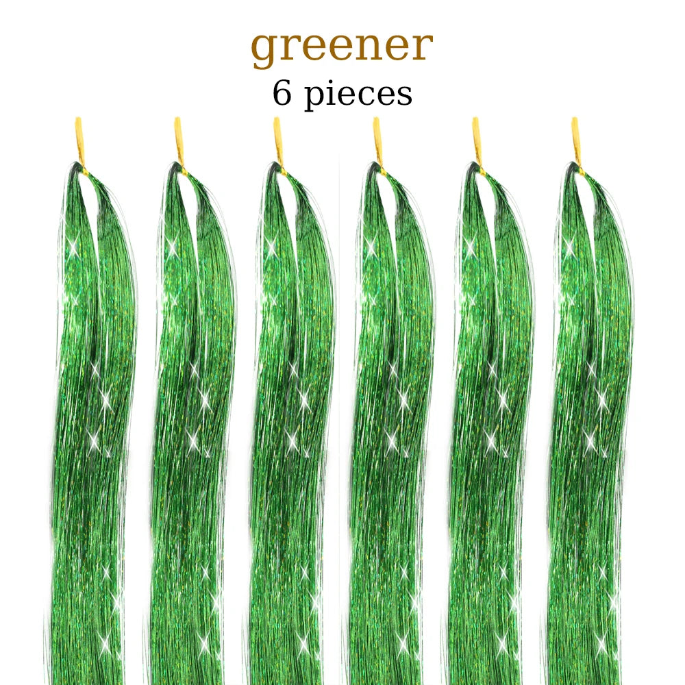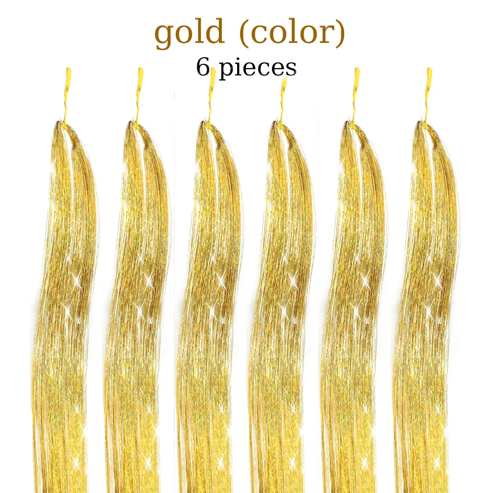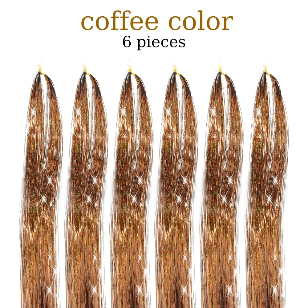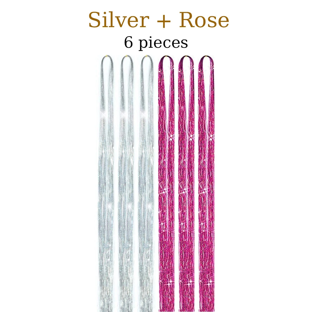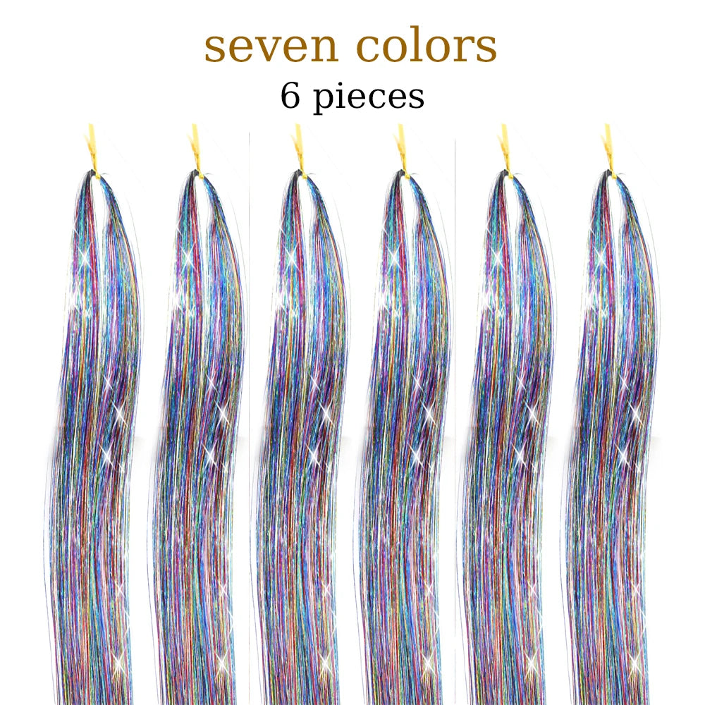 48 Inch Hair Tinsel Kit With Tool 1200 strands Tinsel Hair Extensions 12 Colors Fairy Hair Tinsel, Sparkling Shiny Hair Tinsel