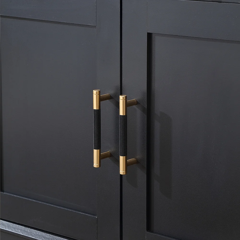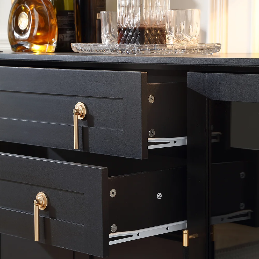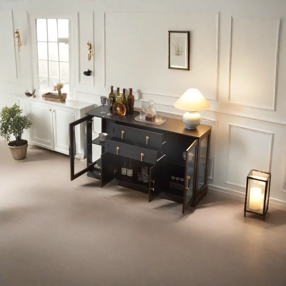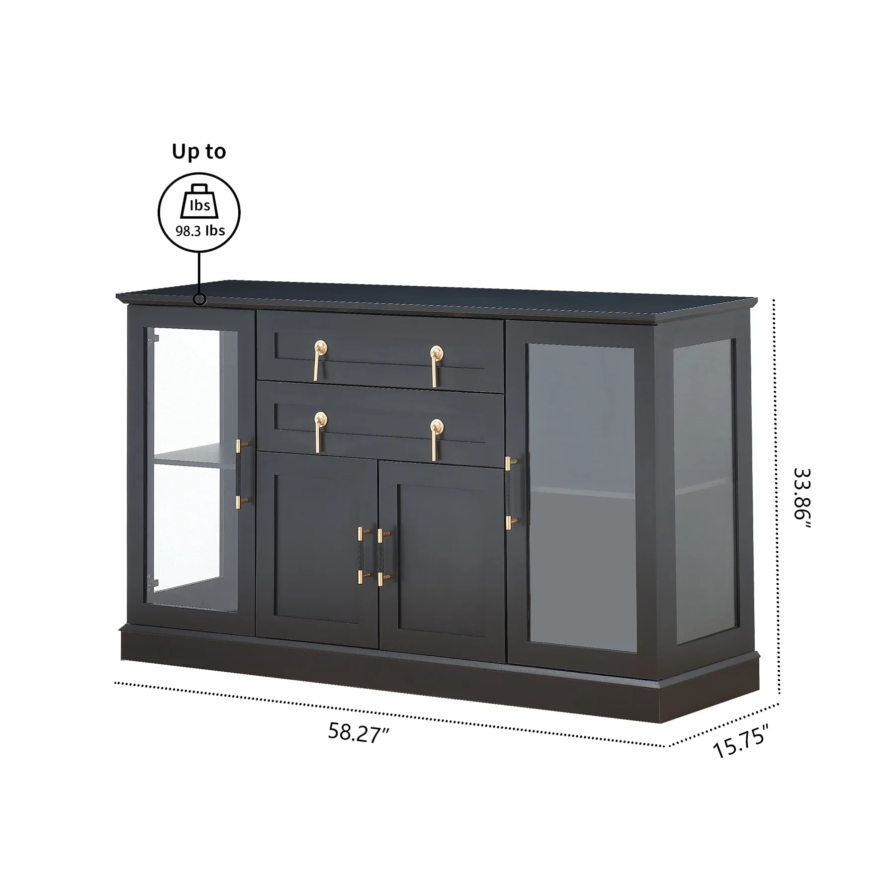 Accent Buffet Cabinet with 2 Glass Doors,Credenza with Two Drawers and Adjustable and Shelves, home decor and accessories ,Black