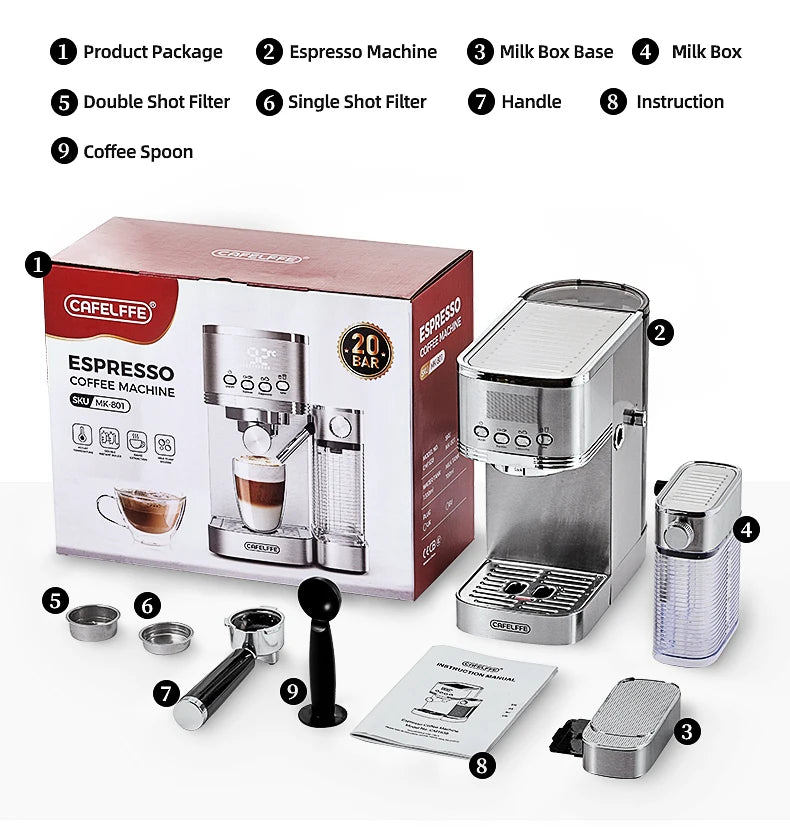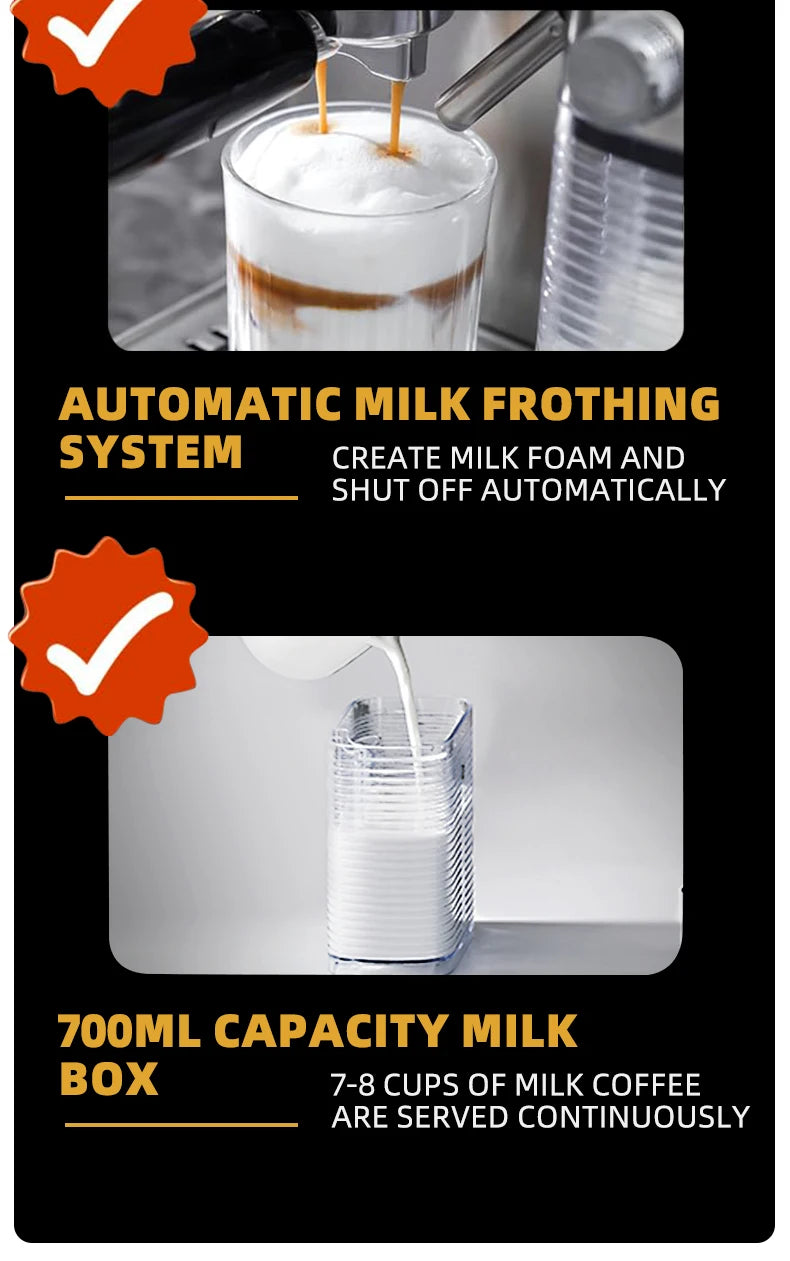 Brew Like A Barista: The core of this espresso coffee machine is the powerful 20 bar pump system, which can extract the flavor and aroma of the coffee to the utmost extent. Now you can enjoy the favorite coffee at home every day.