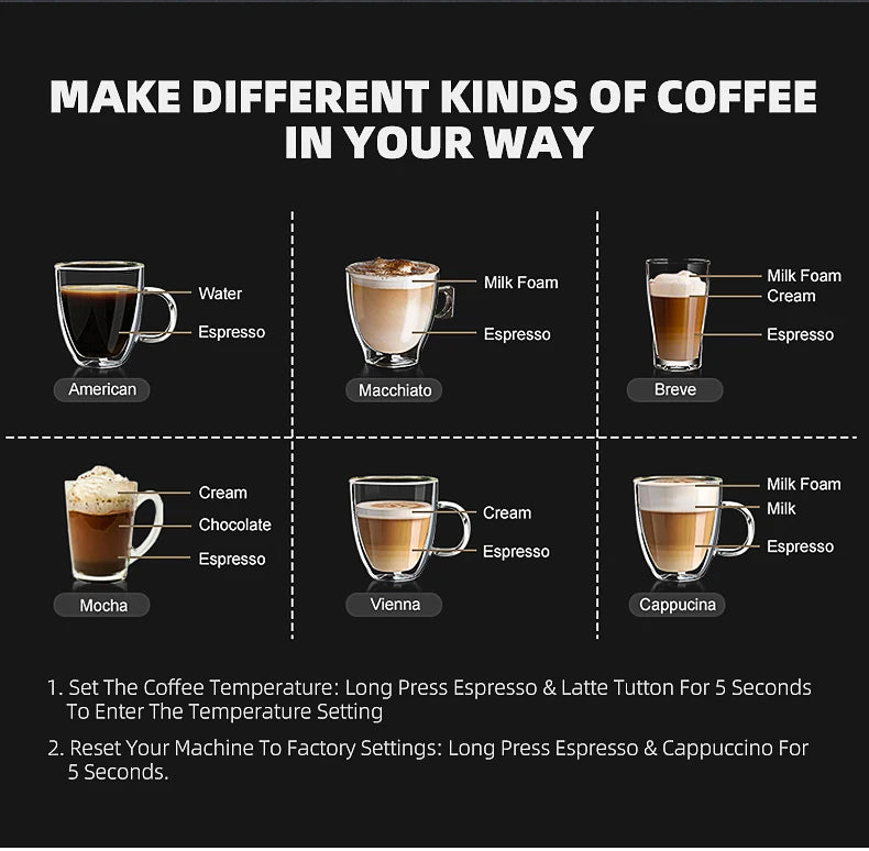 Coffee Type: Espresso,Americano,Machiatto,Latte,Cappuccino