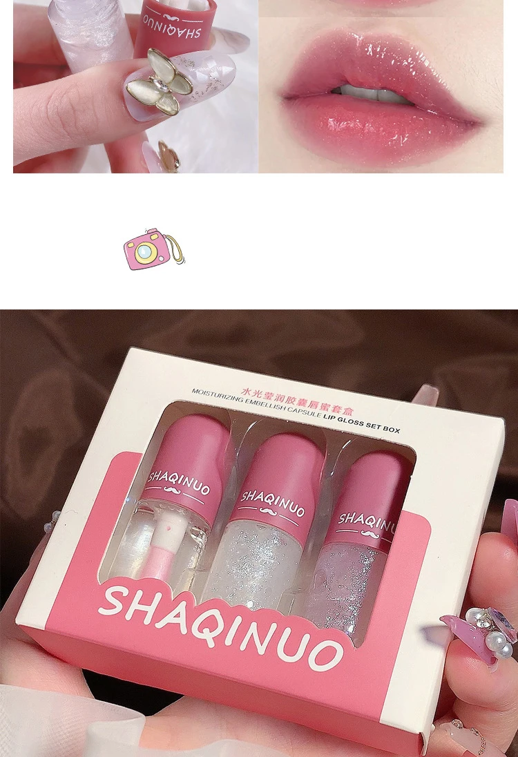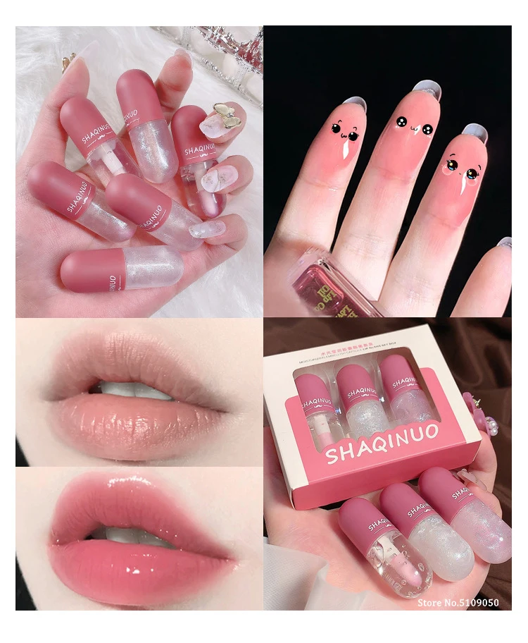 3pcs/box Capsule Lip Jelly Gloss Oil Lip Tint Base Makeup Lip Plumper Oil Lipstick Set Shiny Shimmer Clear Moisturizing Lip Care