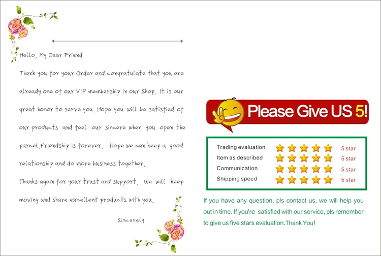 If you are satisfied with the product,please kindly give us a positive feedback with buyer shows.