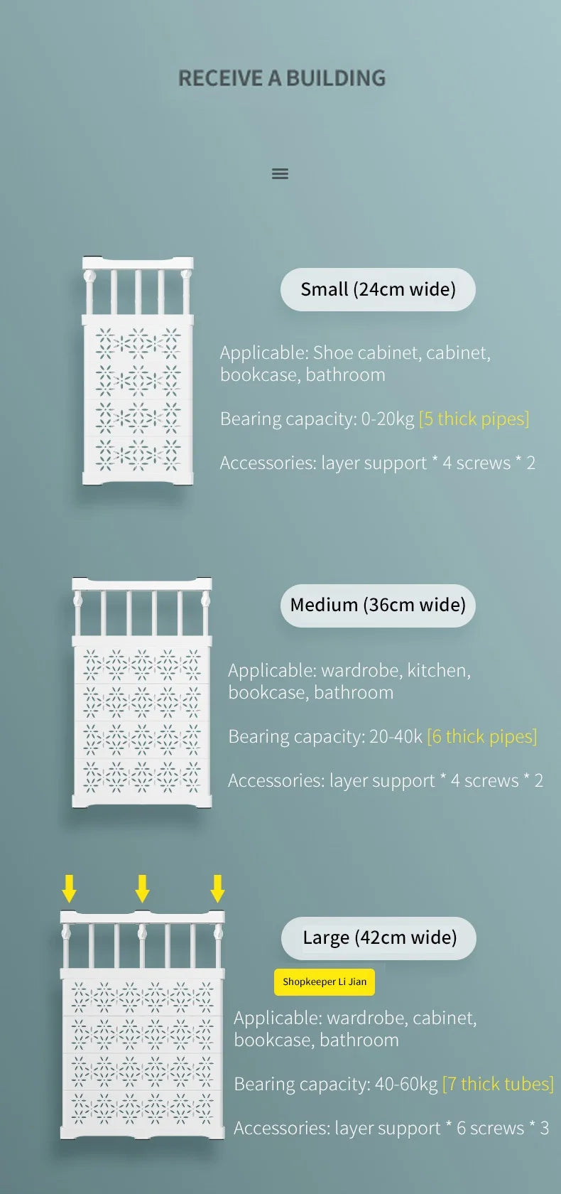This Cupboard Shelf is perfect for different size.Storage, organizing and other all-in-one.