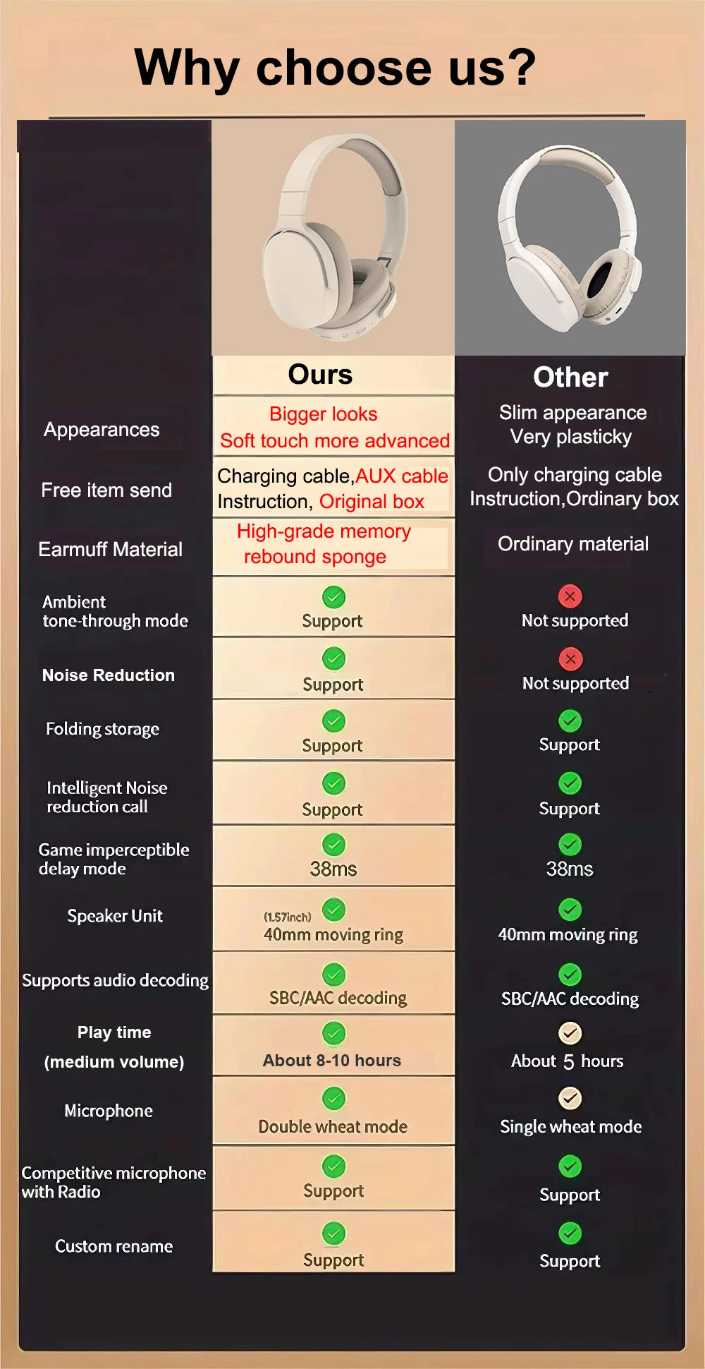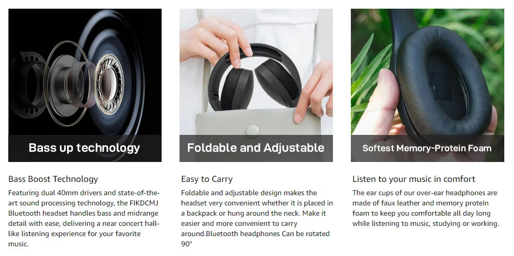 Fashion Wireless Bluetooth Headphones Over Ear HIFI Stereo Headsets True Sports Gaming Earphones TF/AUX Music Player with HD Mic Noise Reduction