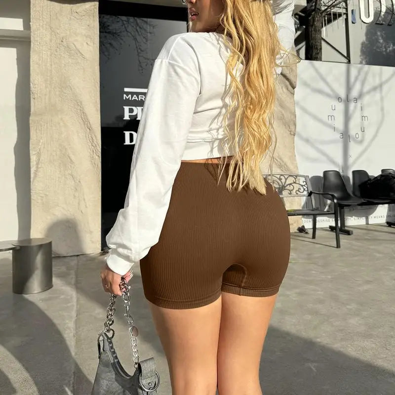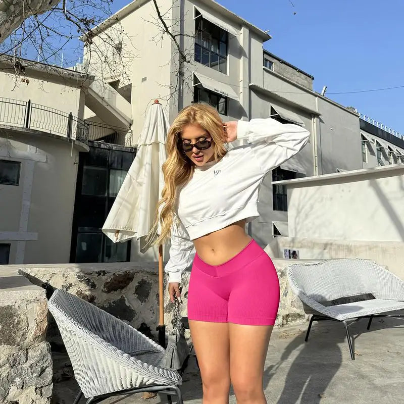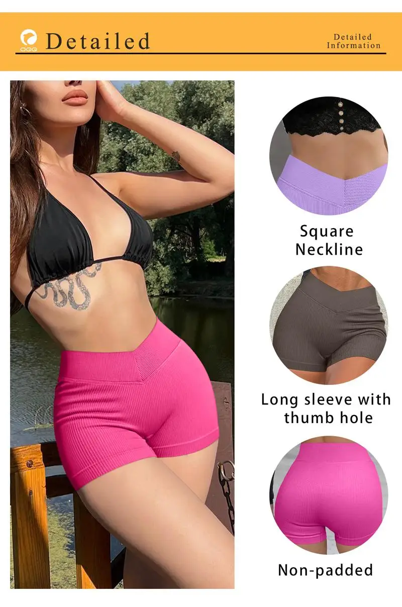 [Main Fabric]-This ribbed shorts made with lightweight,moisture-wicking power fabric.High elasticity, Comfortable, Breathable,Dry,The 4-way stretch to promote both compression and butt lifting, upper leg muscles and reduce muscle vibrations.