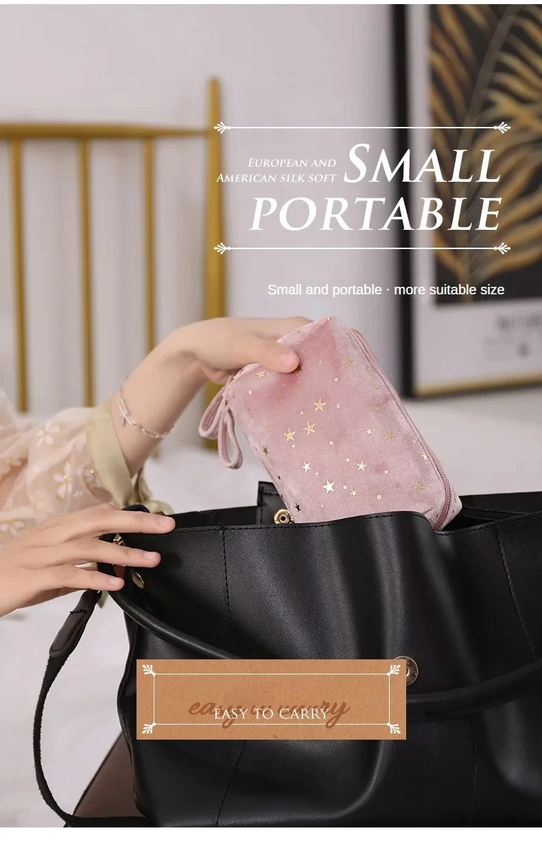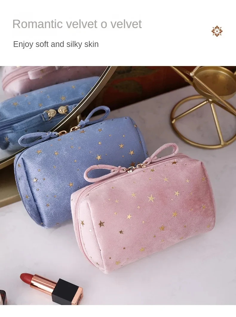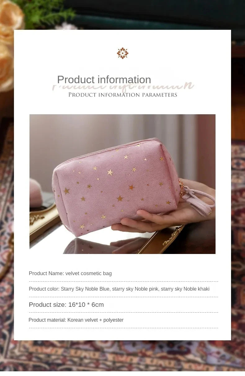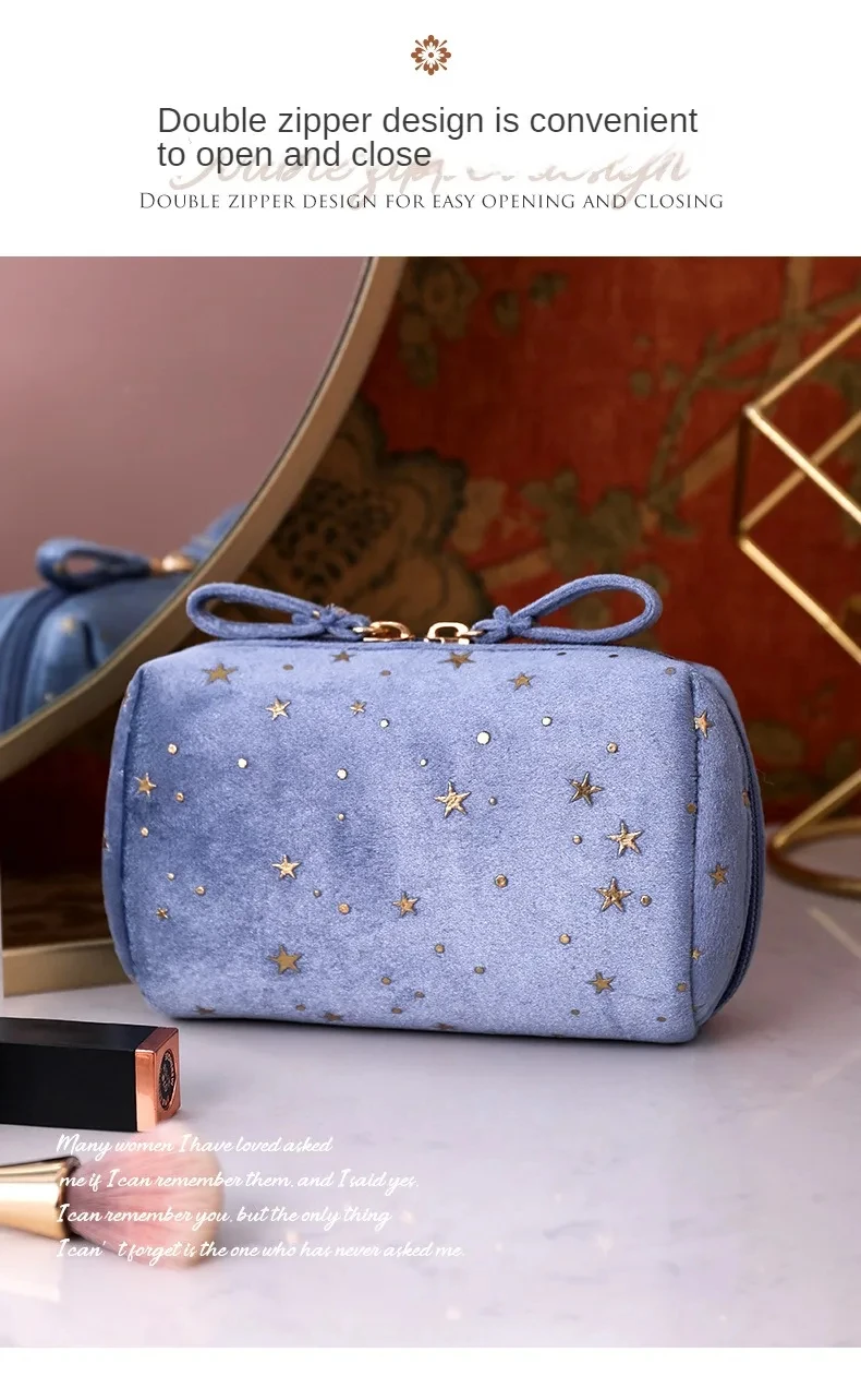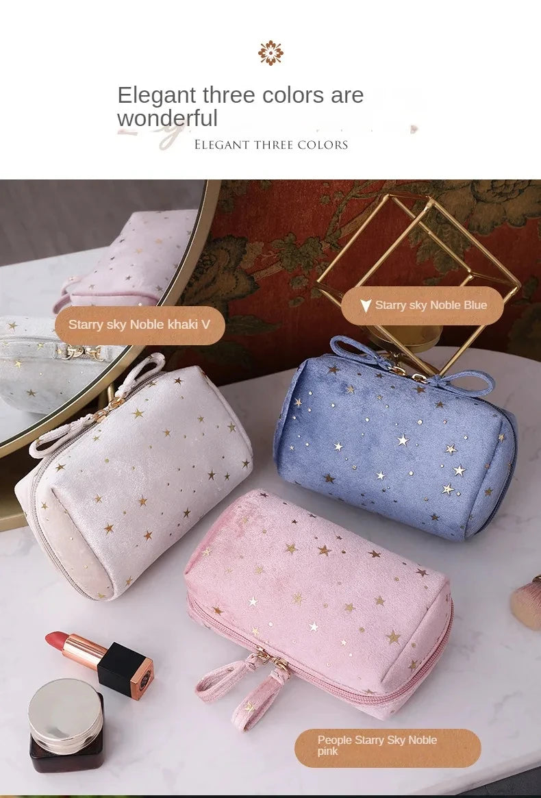 Portable Travel Small Cosmetic Bag Flannel Cosmetic Storage Bag Hand Flannel Women's Large Capacity Starry Sky Cosmetic Bag