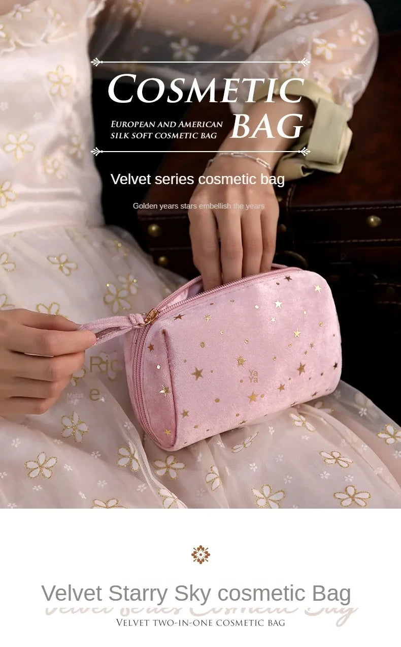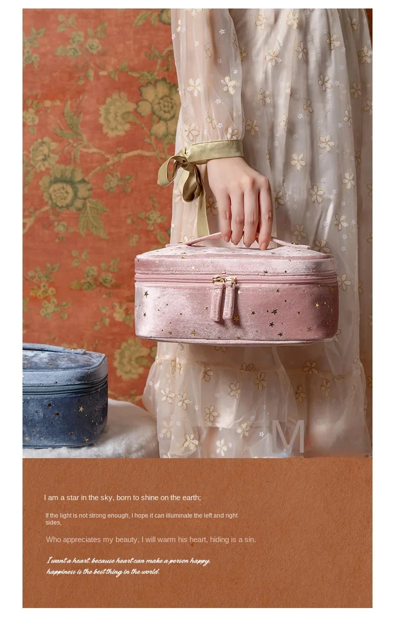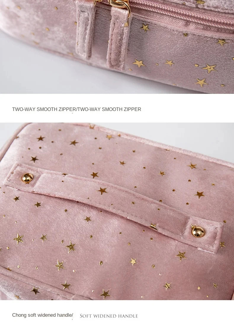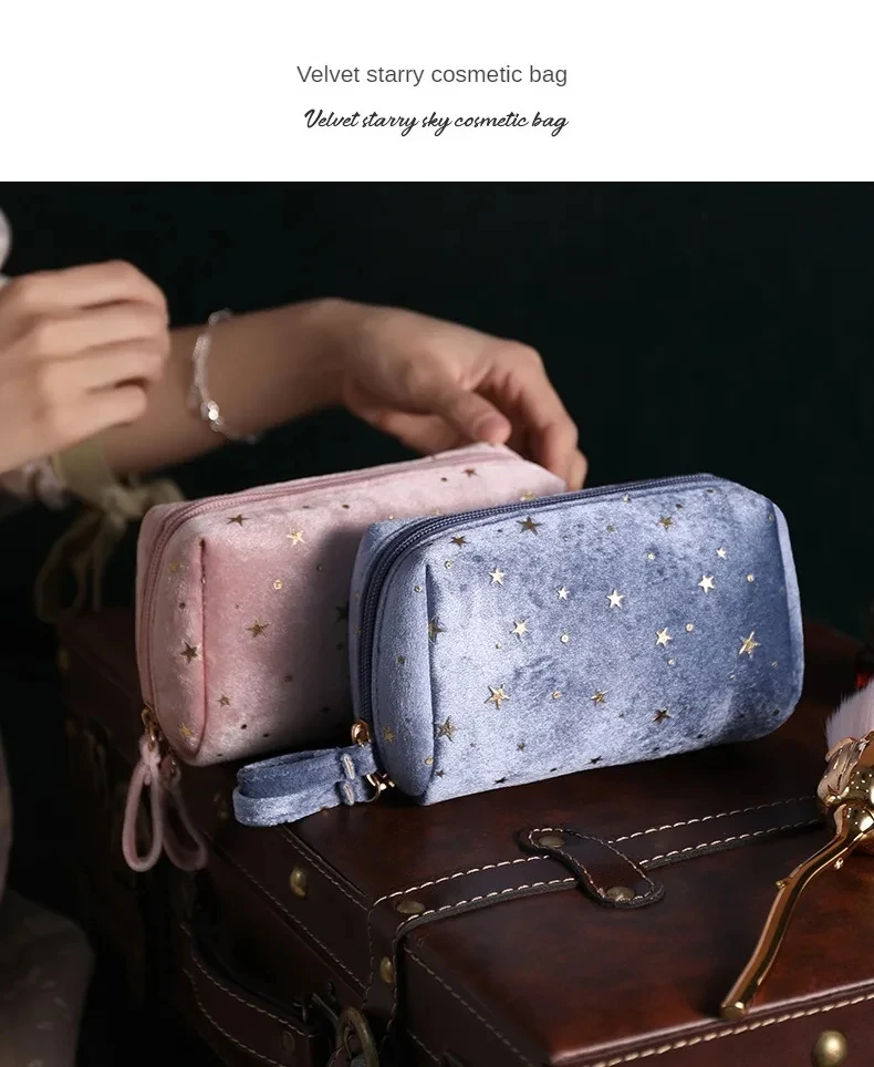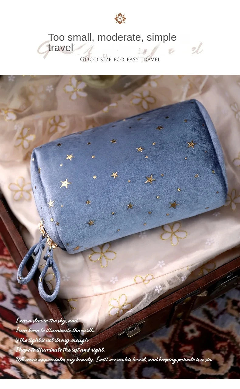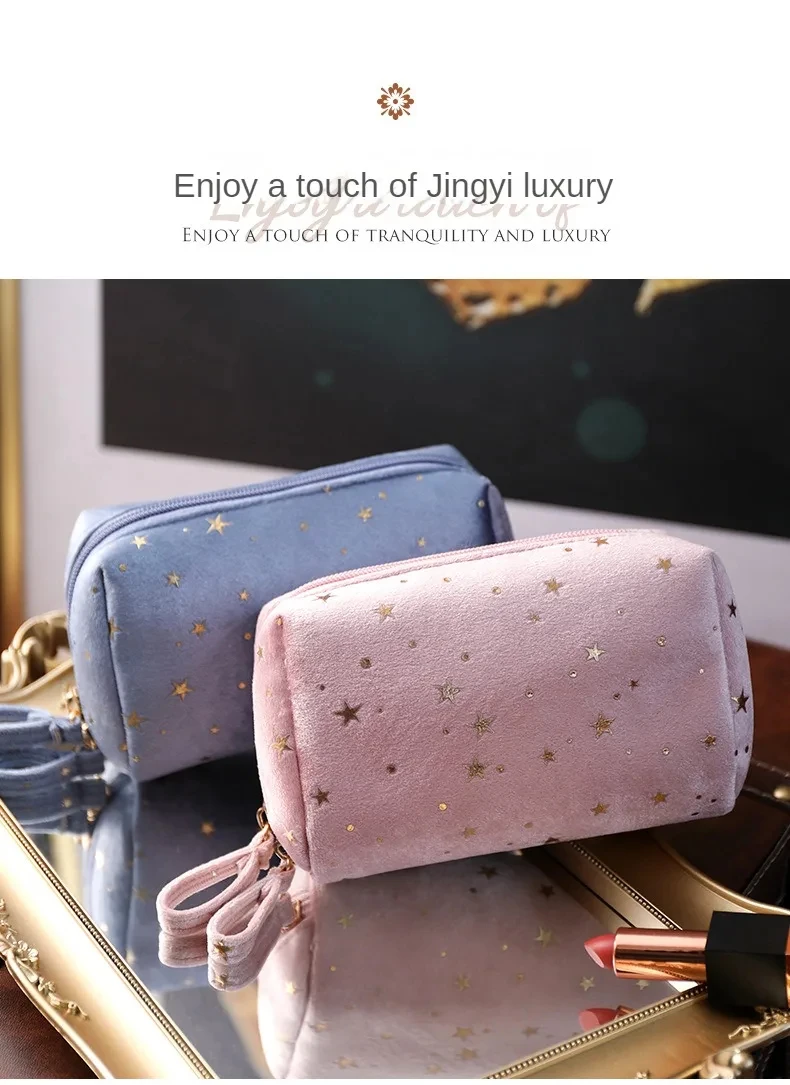 Portable Travel Small Cosmetic Bag Flannel Cosmetic Storage Bag Hand Flannel Women's Large Capacity Starry Sky Cosmetic Bag