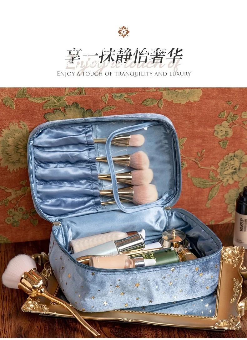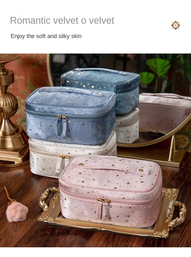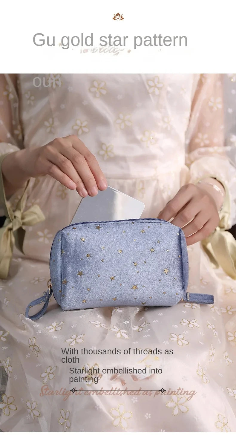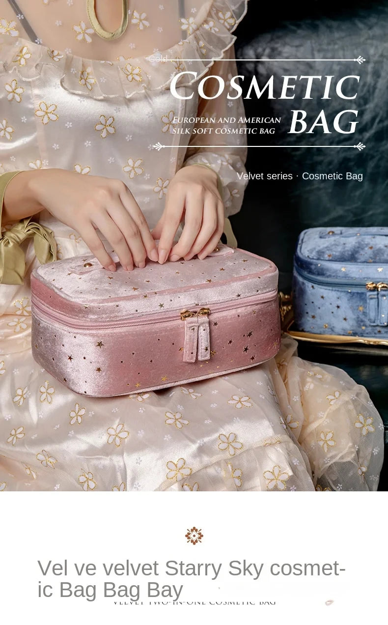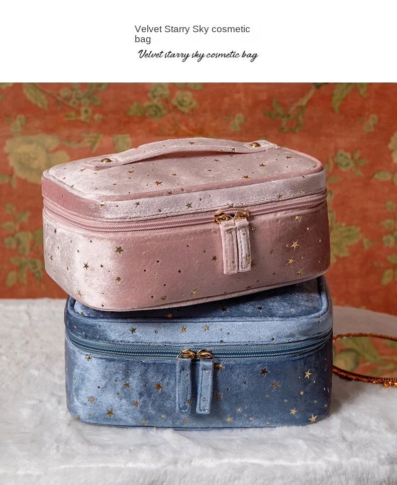 Portable Travel Small Cosmetic Bag Flannel Cosmetic Storage Bag Hand Flannel Women's Large Capacity Starry Sky Cosmetic Bag