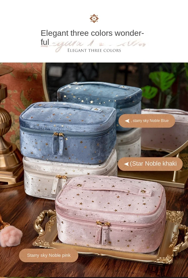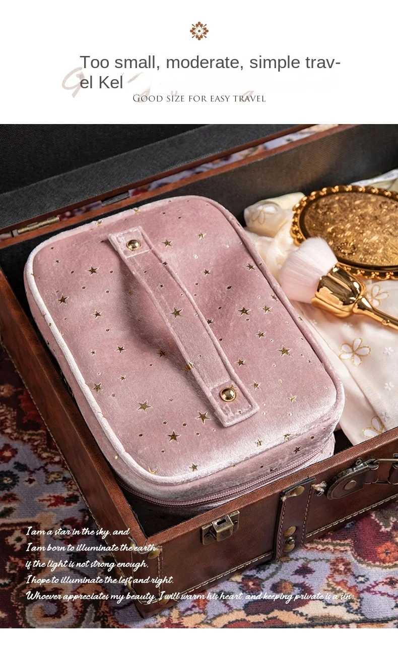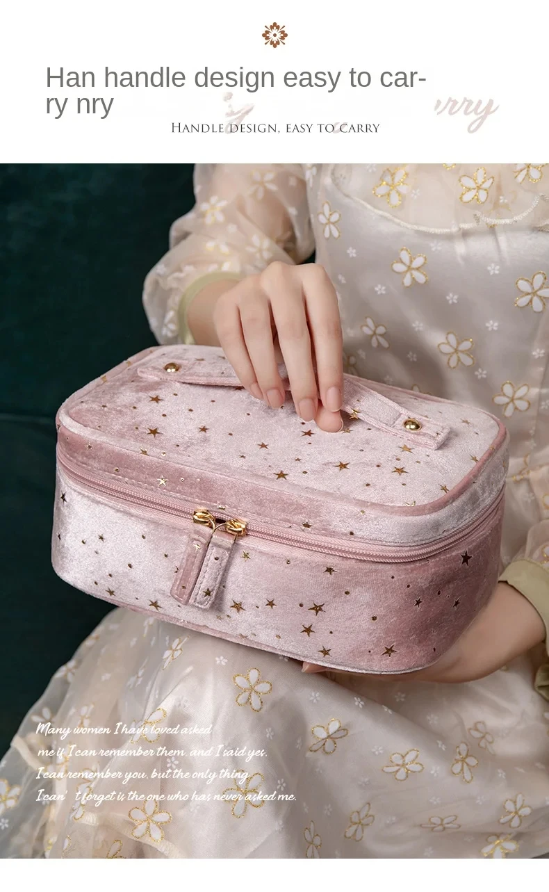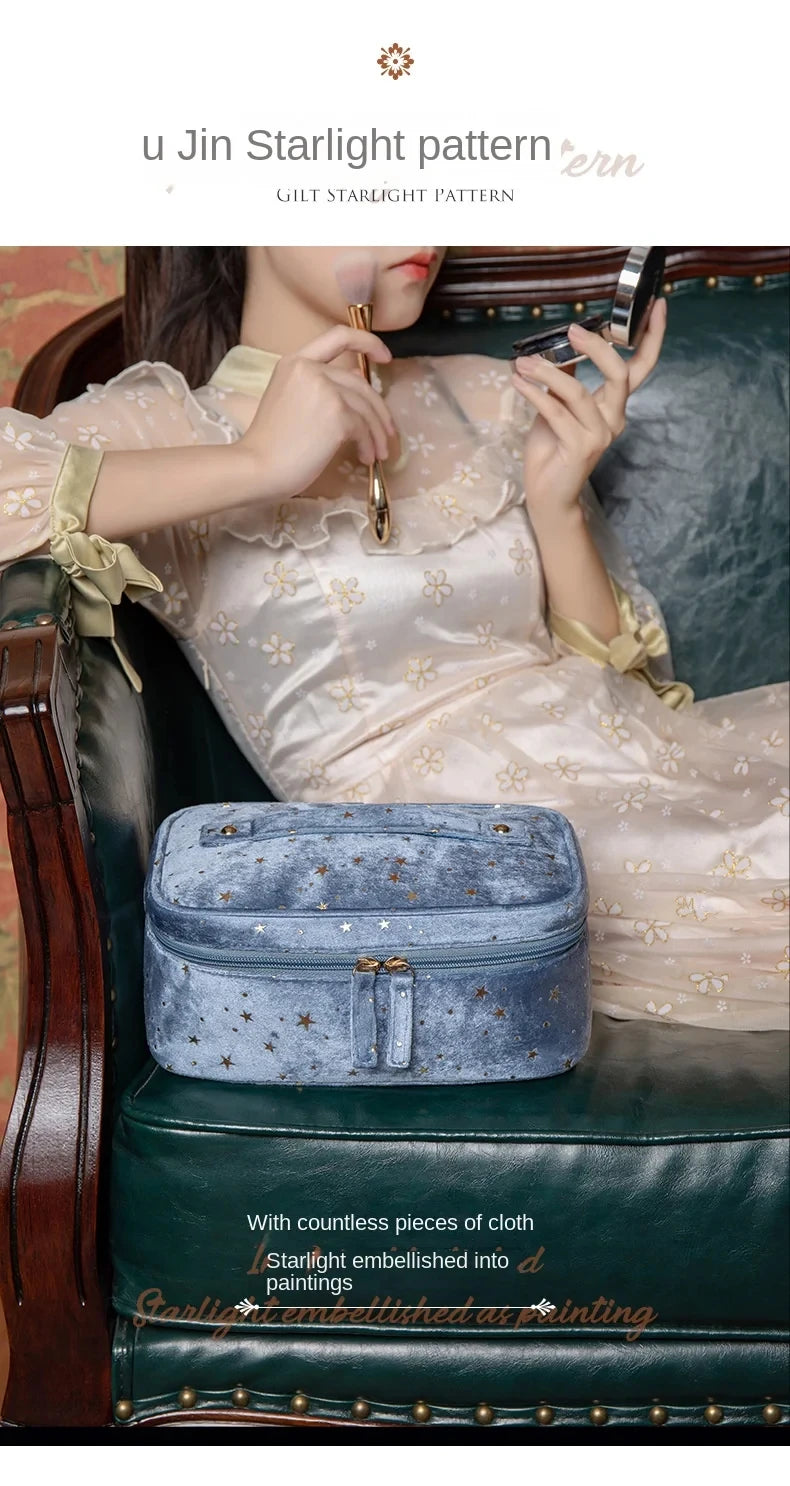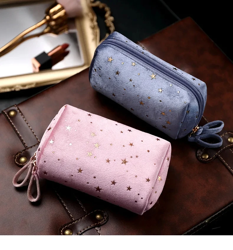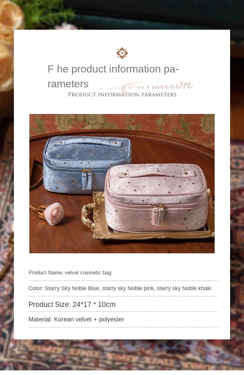 Portable Travel Small Cosmetic Bag Flannel Cosmetic Storage Bag Hand Flannel Women's Large Capacity Starry Sky Cosmetic Bag