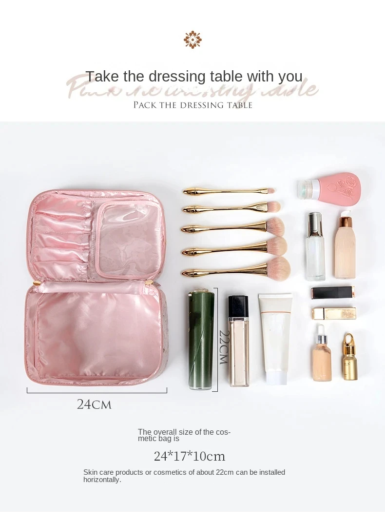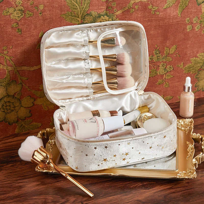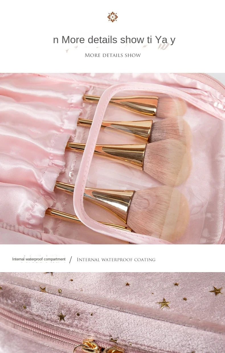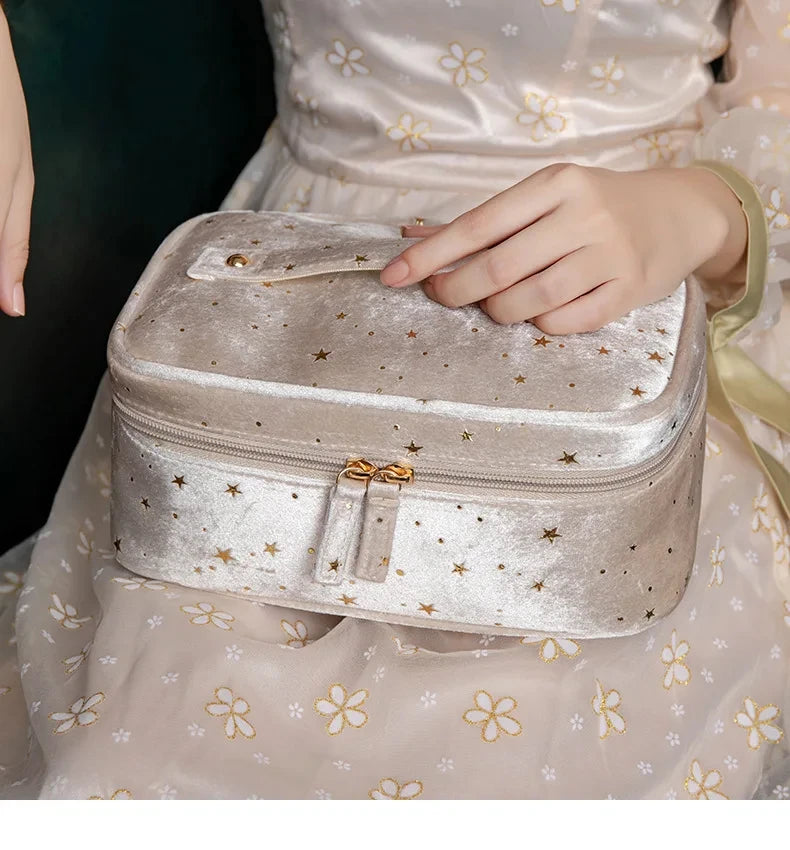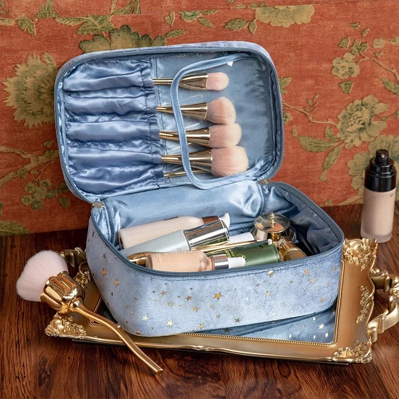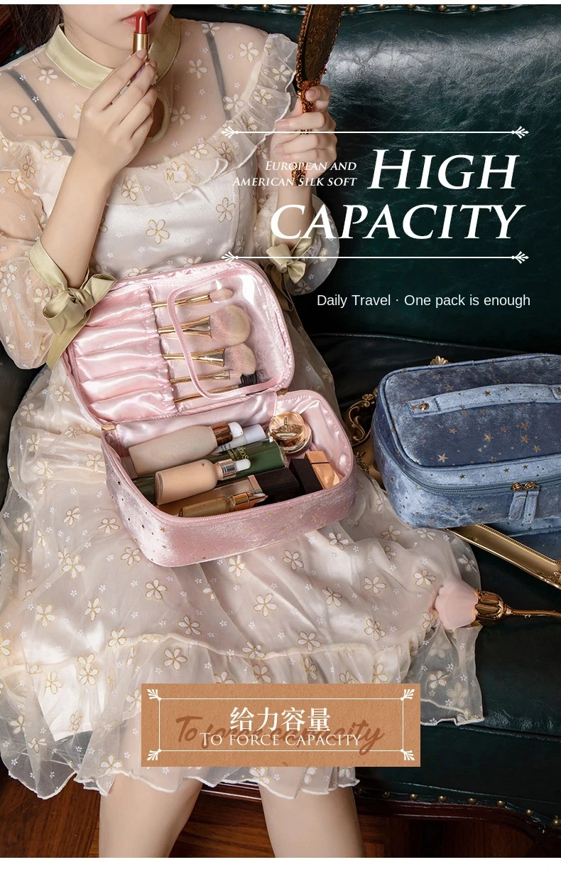 Portable Travel Small Cosmetic Bag Flannel Cosmetic Storage Bag Hand Flannel Women's Large Capacity Starry Sky Cosmetic Bag