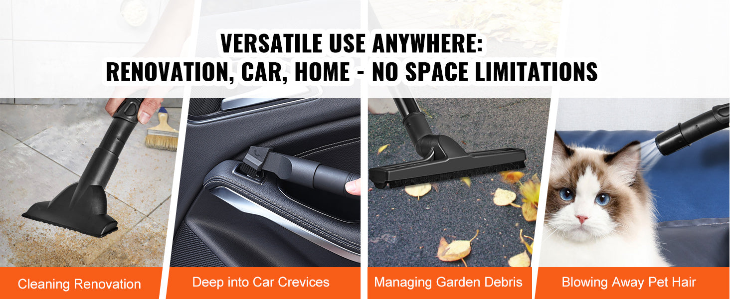 2-in-1 Crevice Nozzle: With a 21.3ft cleaning reach and a brush attachment, it easily cleans various surfaces without damaging upholstery or furniture textures. The flat nozzle reaches walls and corners, leaving no dirt behind.