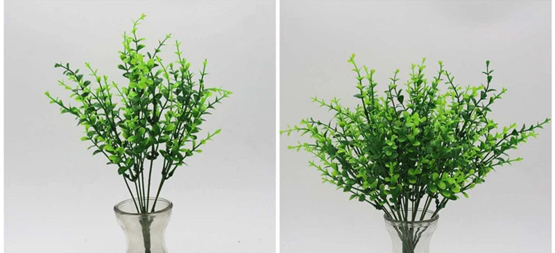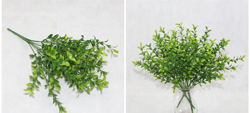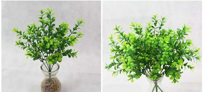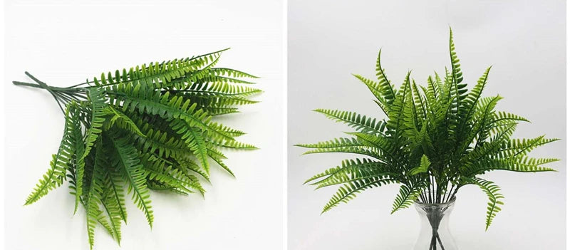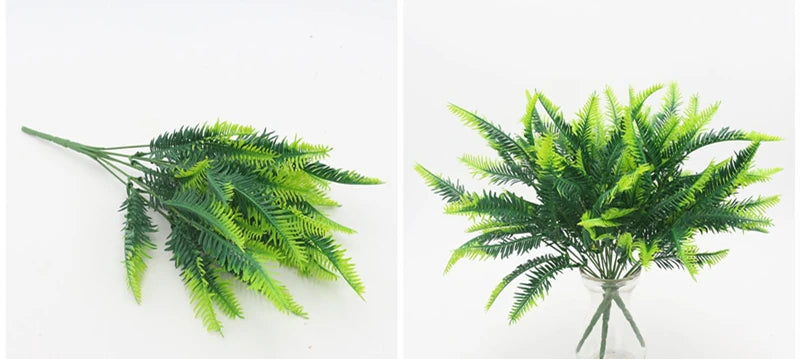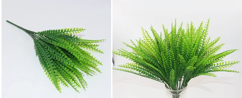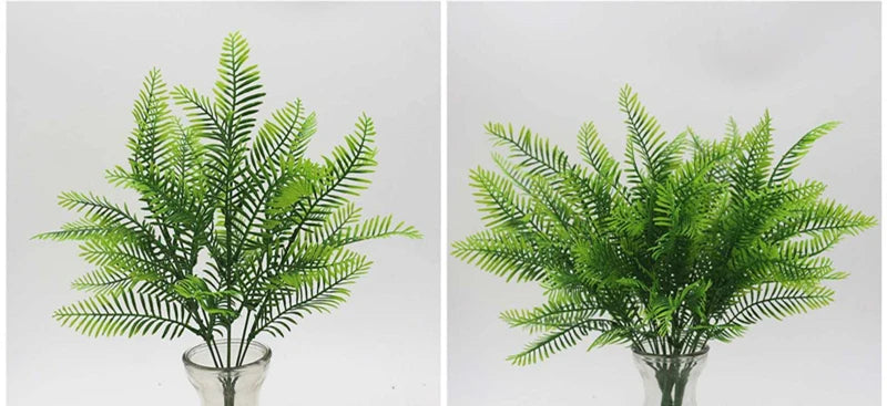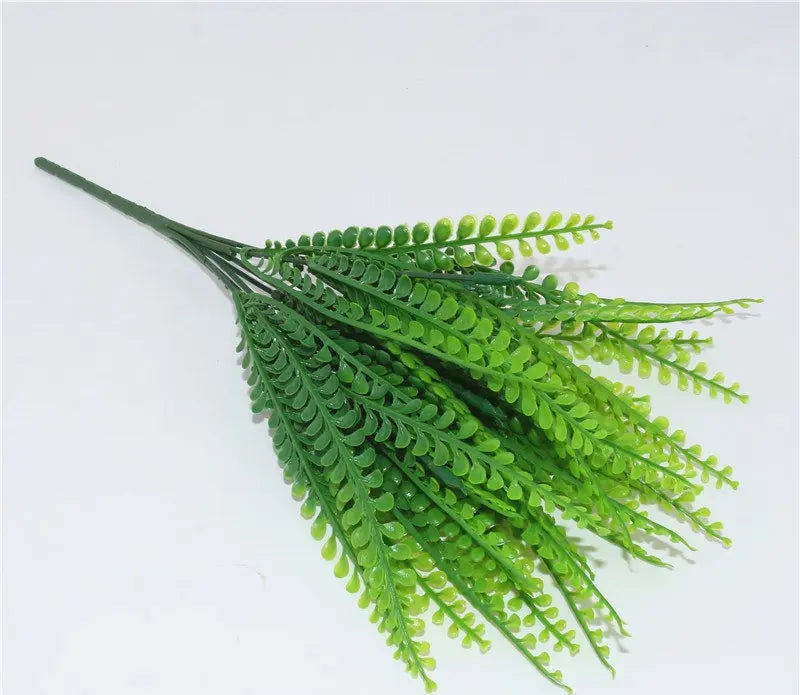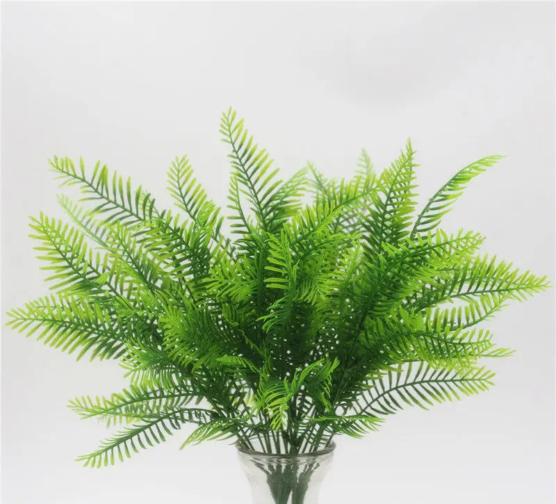 YO CHO Artificial Green Plants 7 Forks Grass Plastic Fake Plant Ferns Grass Green Leaves Forest Twigs Home Garden Hotel Decor