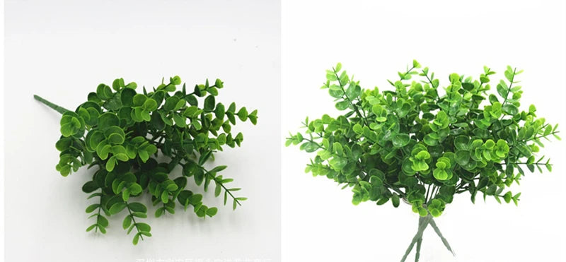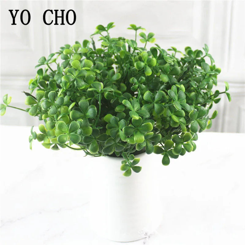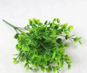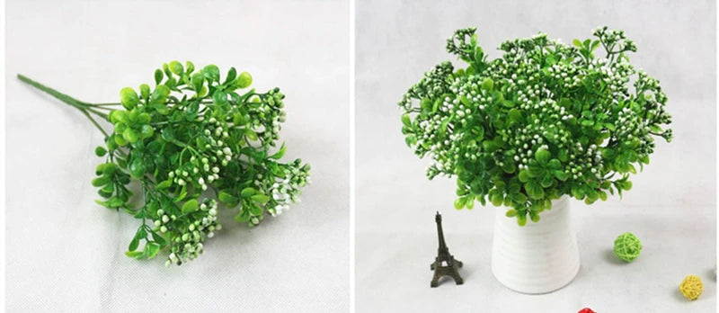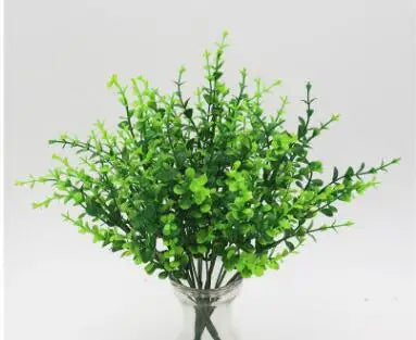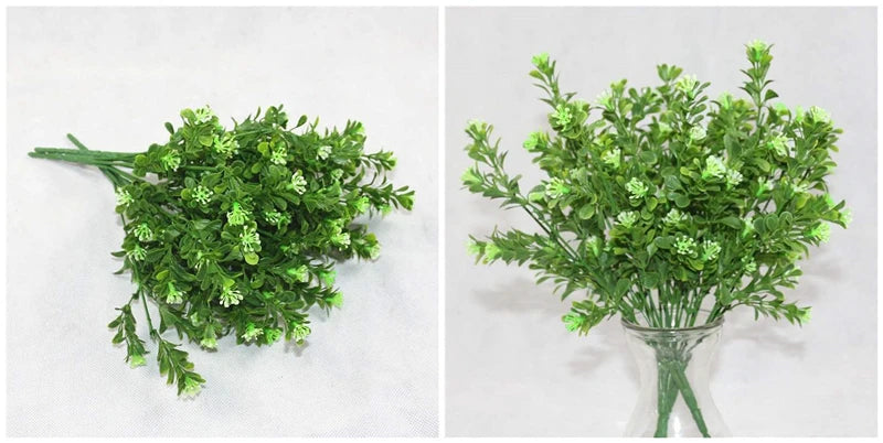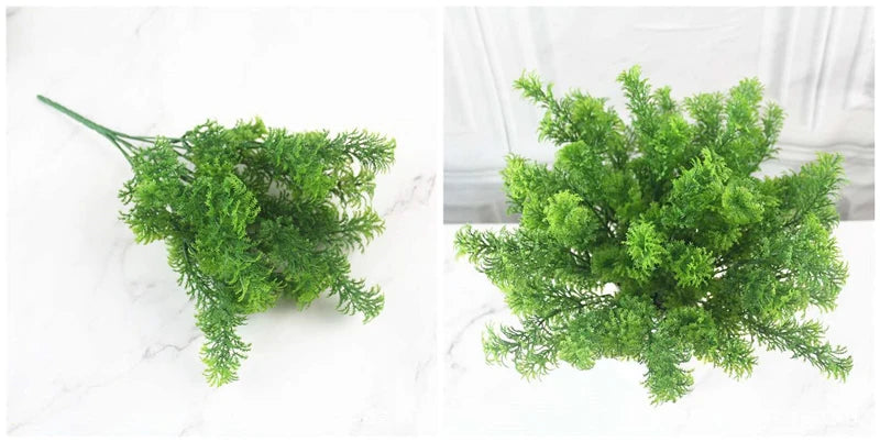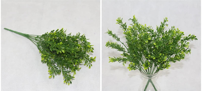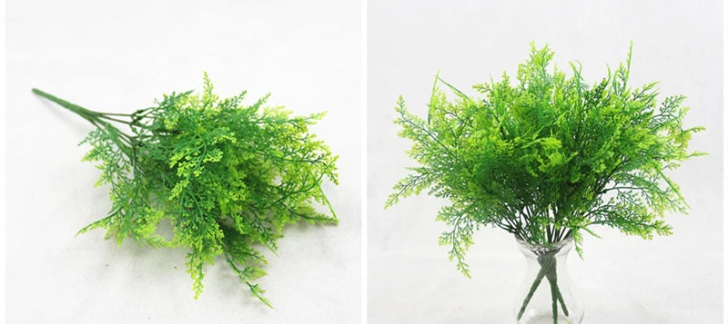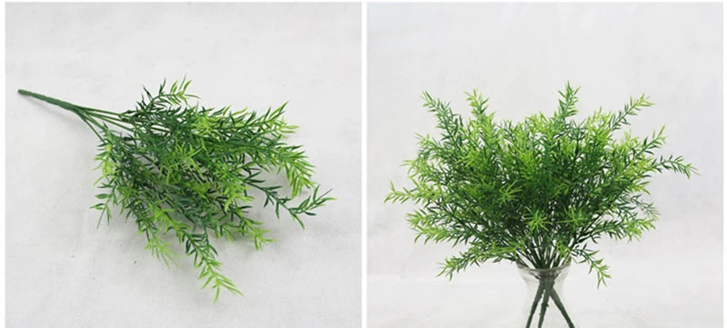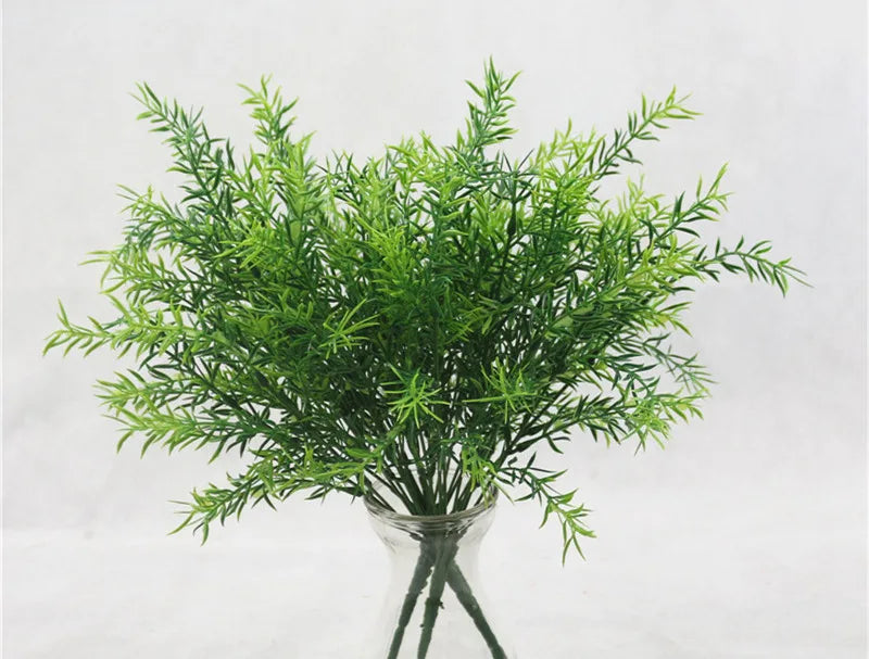 YO CHO Artificial Green Plants 7 Forks Grass Plastic Fake Plant Ferns Grass Green Leaves Forest Twigs Home Garden Hotel Decor